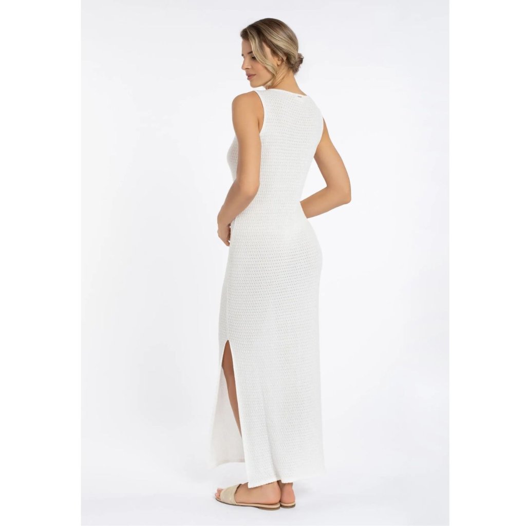 Elegantní maxi šaty bez rukávů s elegantním bočním rozparkem.