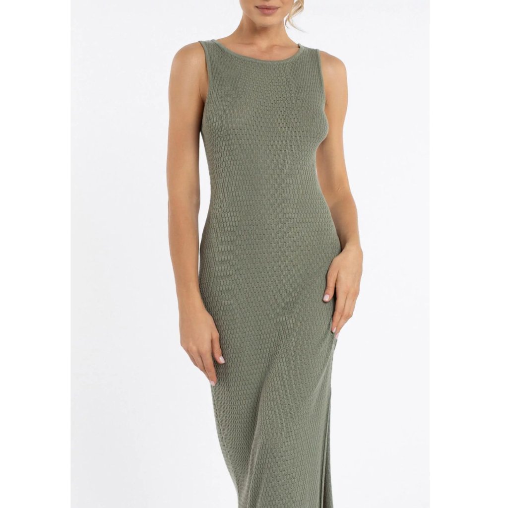 Elegantní maxi šaty bez rukávů s elegantním bočním rozparkem.